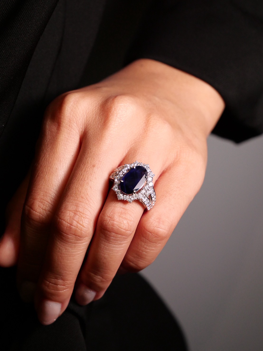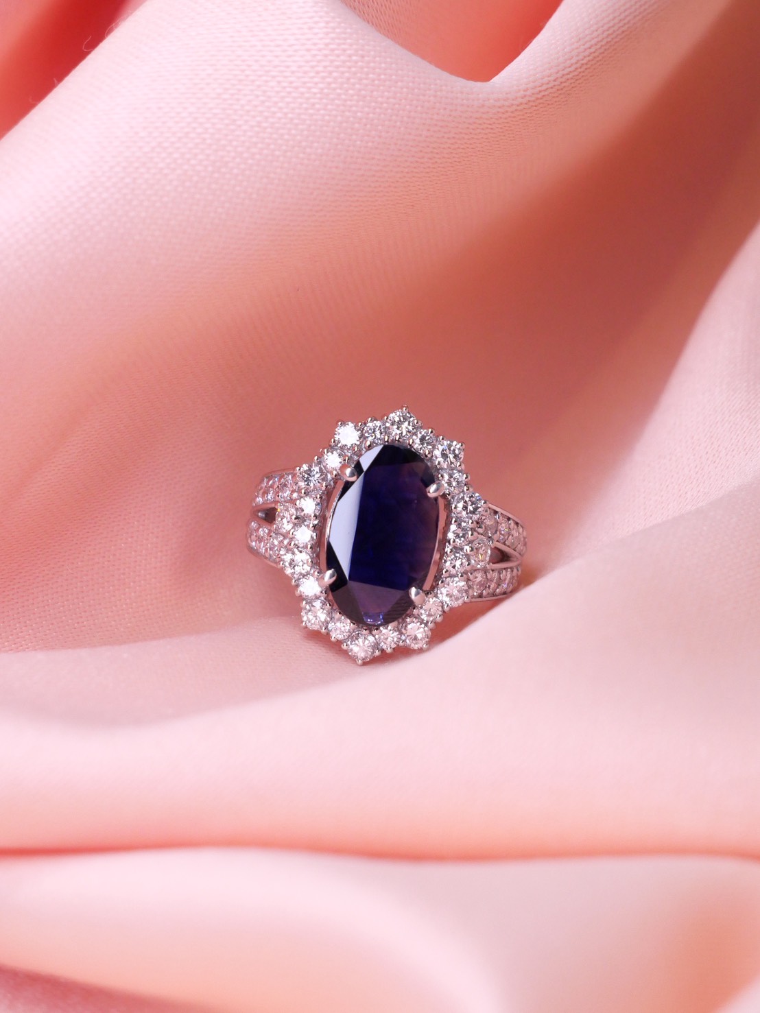 แหวน Natural Sapphire 2.57 ct Burma( Myanmar) ON Indication of heat ใบเซอร์ GIA G.7.10 g Diamond 1.32-0.33 ct