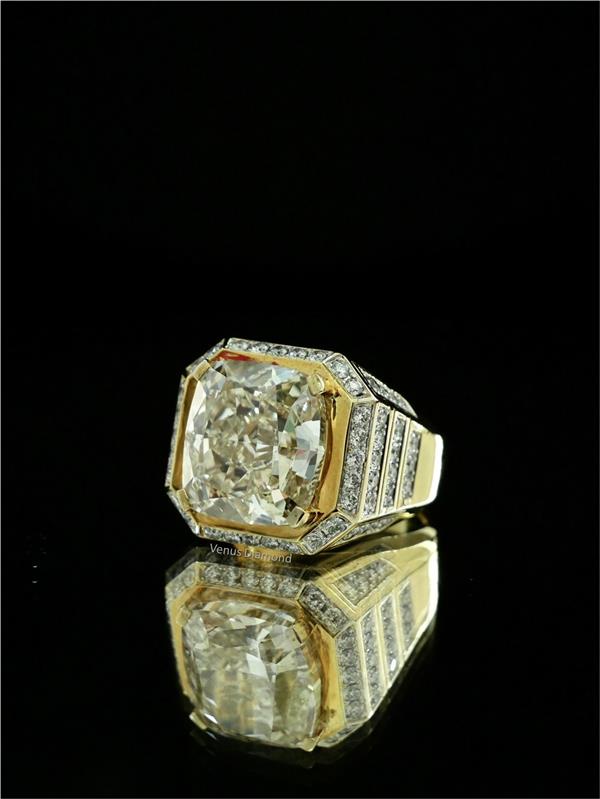 แหวนเพชร Cushion 20.09 ct Fancy Yellow ความสะอาด VVS1 2X N GIL