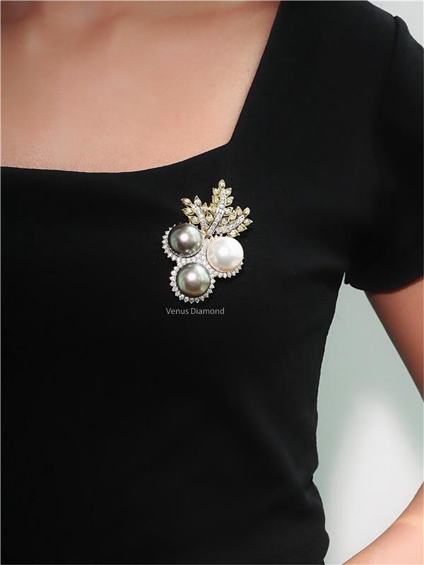 เข็มกลัด Diamond 104 pcs 4.50 ct สี G H ความสะอาด VVS VS + มุก South sea