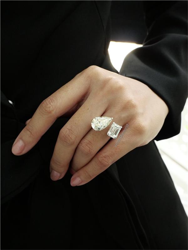 แหวนเพชรไขว้ Pear 5.20 ct +Emerald 3.05 ct สี L-I ความสะอาด VS1-VVS2 ใบเซอร์ HRD