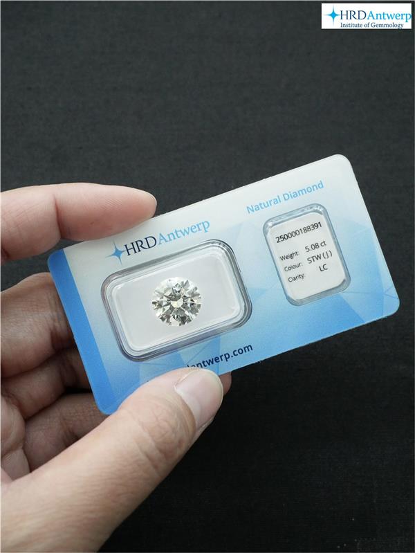 เพชร Round 5.08 ct สี J ความสะอาด Loupe clean ใบเซอร์ HRD