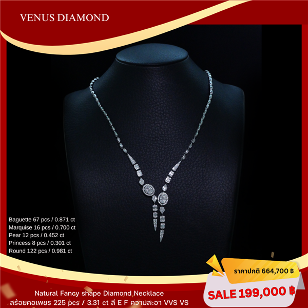 สร้อยคอเพชร Fancy shape 225 pcs / 3.31 ct สี E F ความสะอา VVS VS