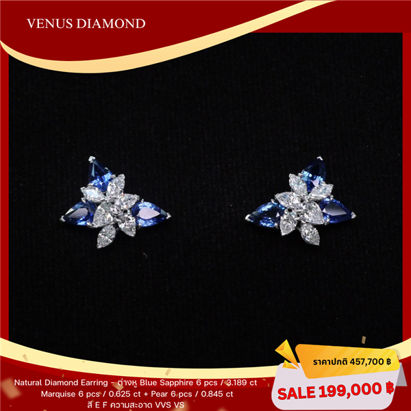 ต่างหู Blue Sapphire 6/3.189 ct +Marquise 6/0.625 ct Pear 6/0.845 ct สี E F ความสะอาด ...