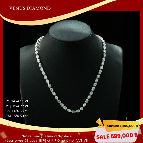 สร้อยคอเพชร Fancy 58 pcs / 18.75 ct สี F G ความสะอา VVS VS