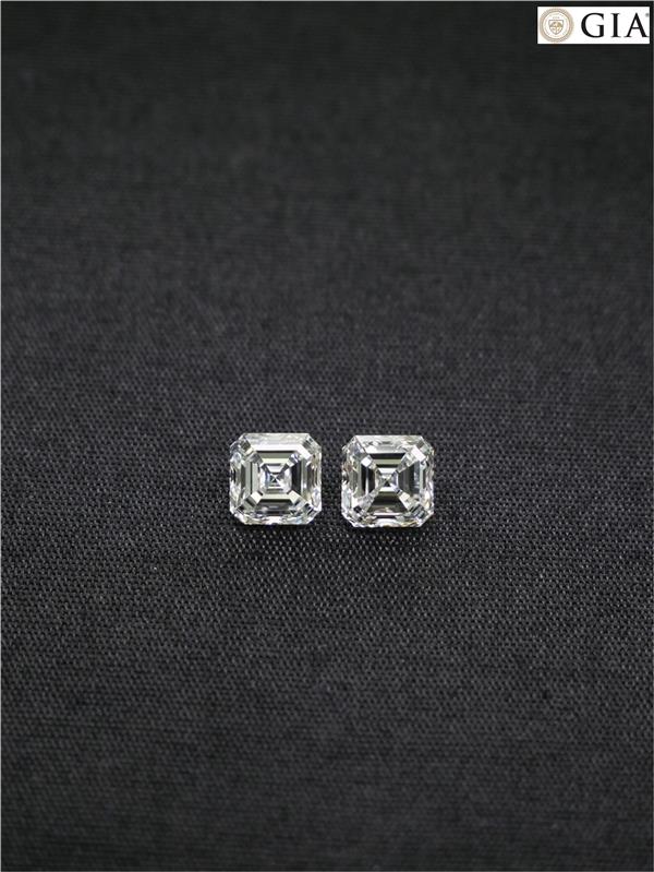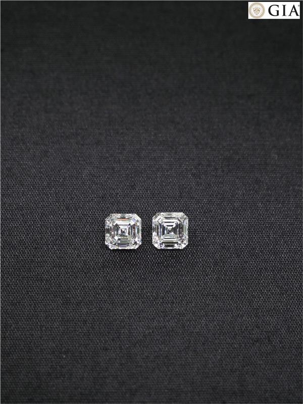 เพชร Asscher 0.61 ct+0.59 ct สี H ความสะอาด VS1-VVS1 เซอร์ GIA