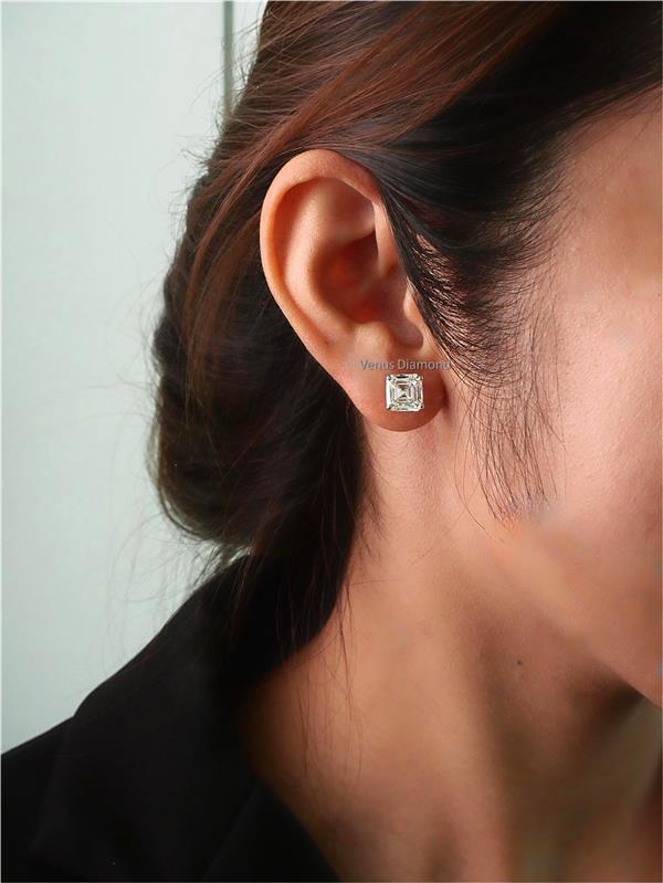ต่างหูเพชร Asscher 3.00 ct+3.10 ct สี H ความสะอาด VVS2-VS1 ใบเซอร์ HRD