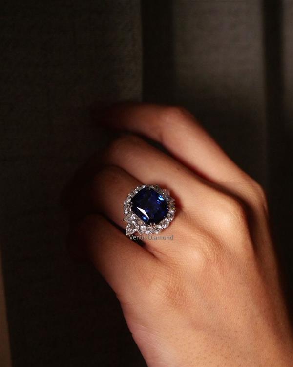 แหวน Sapphire 7.44 ct Pear 6 pcs 1.47 ct Round 10 pcs 1.06 ct ซีลอน เผาเก่า