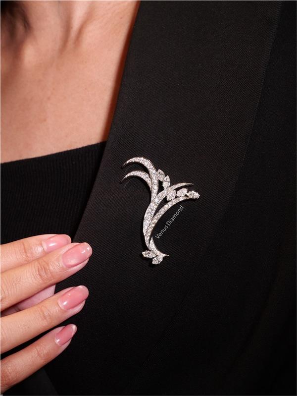 เข็มกลัด Marquise 7 pcs 1.74 ct Round 60 pcs 1.97 ct สี F ความสะอาด VVS GIL