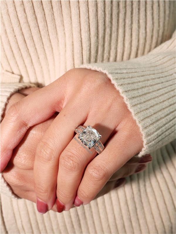 แหวนเพชร Cushion 6.06 ct สี L ความสะอาด VS1 เซอร์ IGI