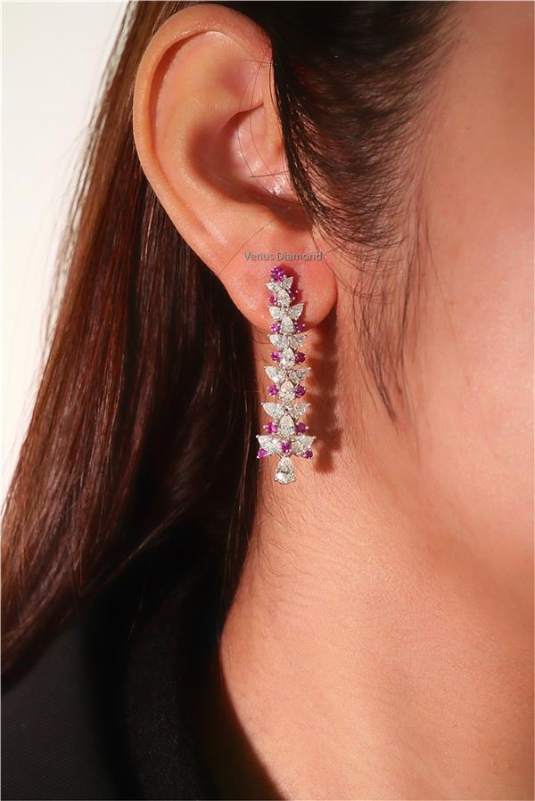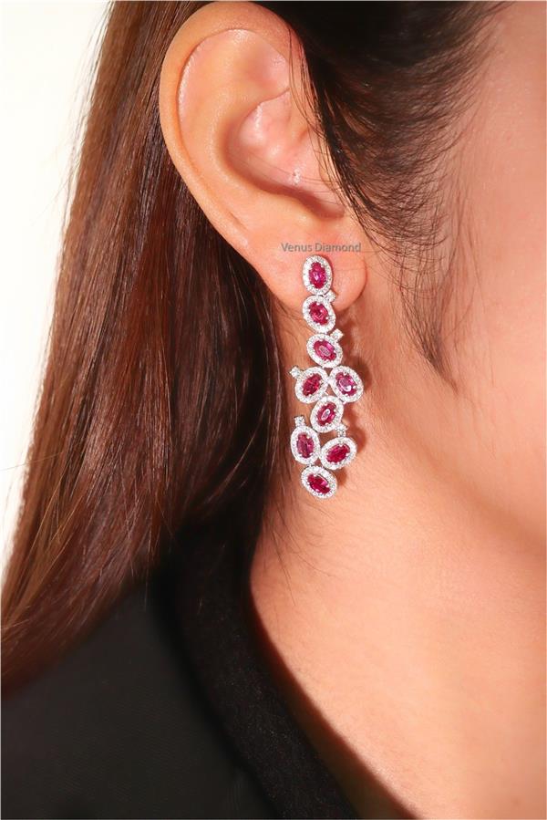 ต่างหู Ruby 18 pcs 5.18 ct + Diamond 298 pcs 1.60 ct สี G-H ความสะอาด VVS VS GIL