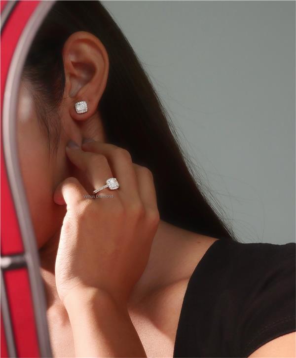 ต่างหูเพชร Cushion 2 pcs 2.03 ct +แหวนเพชร Cushion 1.01 ct สี G-H ความสะอาด VVS VS ...