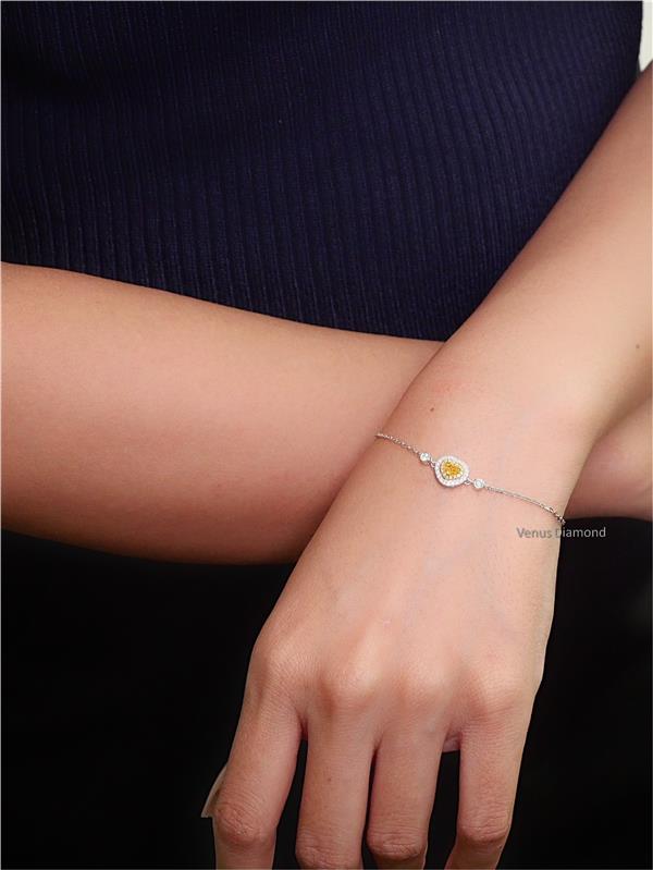 สร้อยข้อมือ Pear 0.22 ct Fancy Intense Yellow ความสะอาด ใบเซอร์ GIA