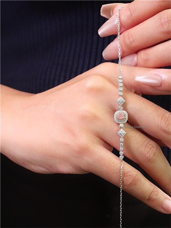 สร้อยข้อมือเพชร Cushion 0.19 ct Fancy Pinkish Brown ใบเซอร์ GIA