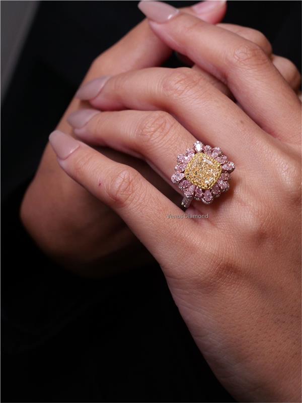 แหวนเพชร Pear 2.10 ct Fancy Yellow ความสะอาด VVS1 GIL + Pear 2.54 ct K VS1 GIL