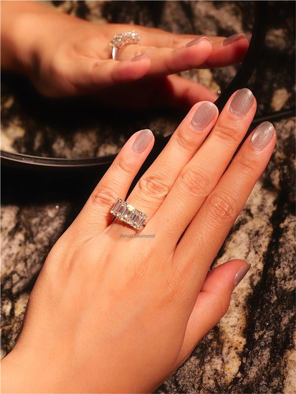 แหวนเพชร Emerald 1.55 ct+1.62 ct+1.50 ct สี J-K ใบเซอร์ GIA