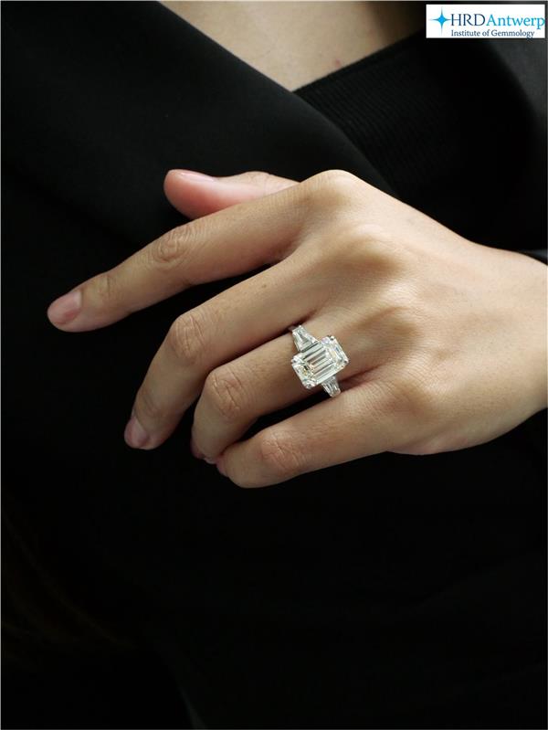 แหวนเพชร Emerald 5.10 ct สี J ความสะอาด VVS2 ใบเซอร์ HRD
