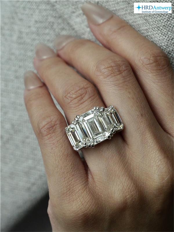 แหวนเพชร Emerald 8.02+3.51+3.50 ct สี H-J ความสะอาด VVS2-VS1-VVS1 ใบเซอร์ HRD