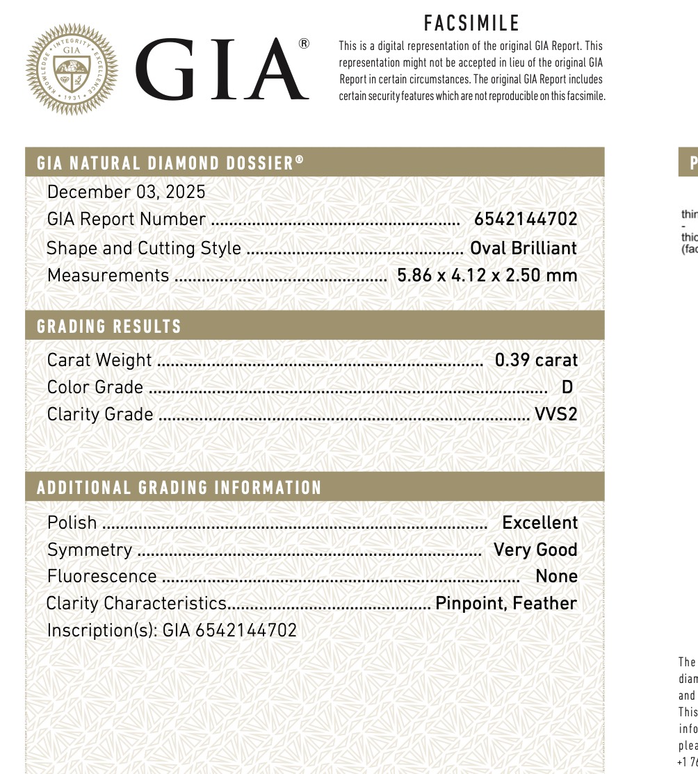 5) Oval 0.39 ct D VVS2 1X1VG N GIA 6542144702 ราคาเต็ม 32,760 บาท ราคาขาย 22,000 บาท