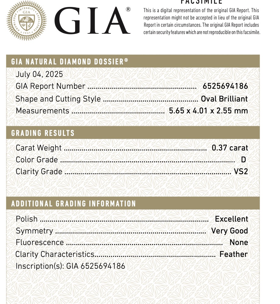 20) Oval 0.37 ct D VS2 1X1VG N GIA 6525694186 ราคาเต็ม 26,640 บาท ราคาขาย 18,000 บาท