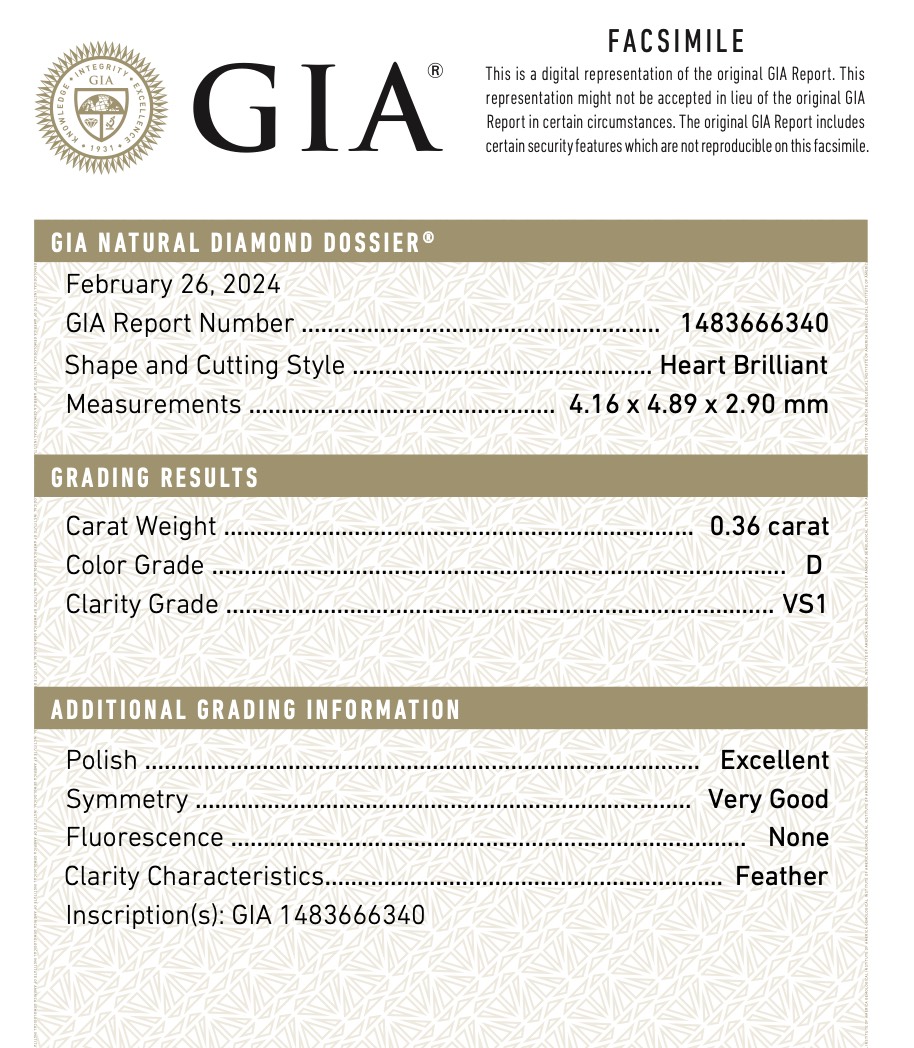 8) Heart 0.36 ct D VS1 1X1VG N GIA 1483666340 ราคาเต็ม 27,360 บาท ราคาขาย 19,000 บาท