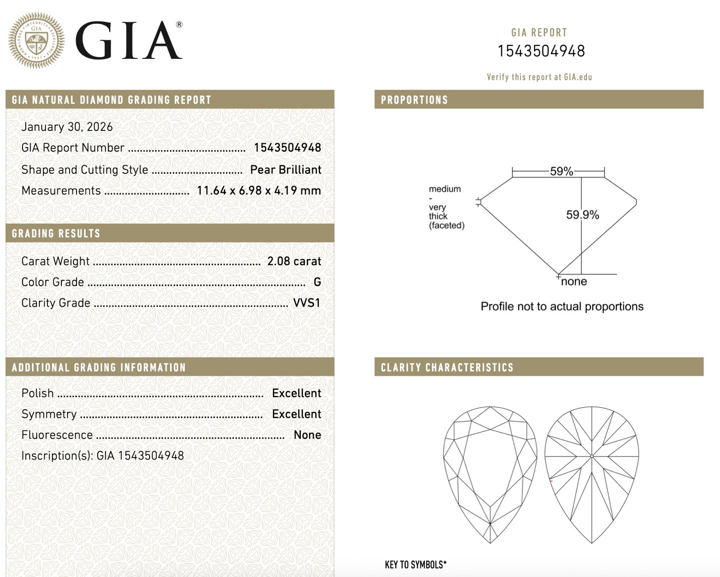 21) Pear 2.08 ct G VVS1 2X N GIA 1543504948 ราคาเต็ม 1,331,200 บาท ราคาขาย 1,149,000 บาท