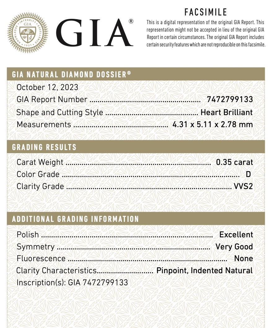 9) Heart 0.35 ct D VVS2 1X1VG N GIA 7472799133 ราคาเต็ม 29,400 บาท ราคาขาย 20,000 บาท