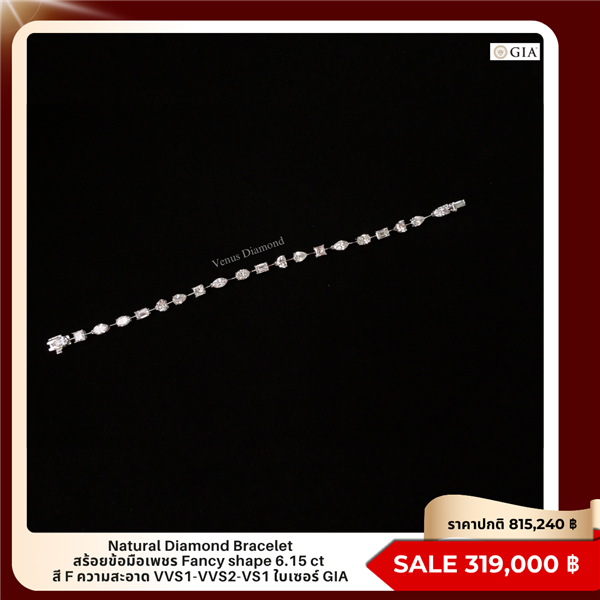 สร้อยข้อมือเพชร Fancy shape 6.15 ct สี F ความสะอาด VVS1-VVS2-VS1 ใบเซอร์ GIA