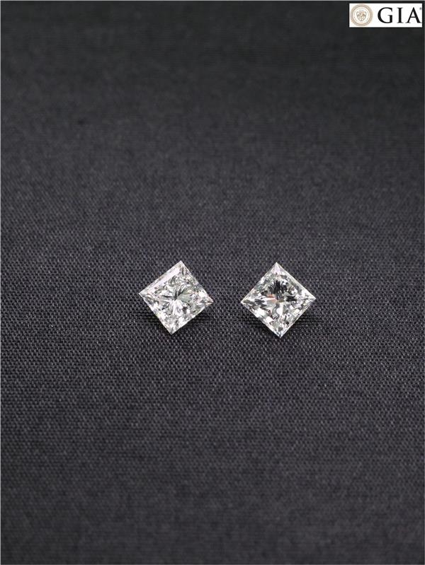 ต่างหูเพชร Princess 1.00 ct +1.01 ct สี G ความสะอาด SI1 เซอร์ GIA