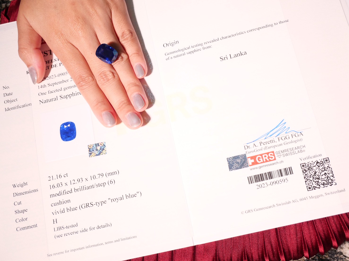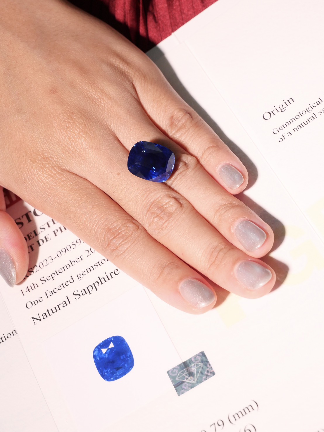 Sapphire 21.16 ct vivid blue Royal blue Sri Lanka GRS