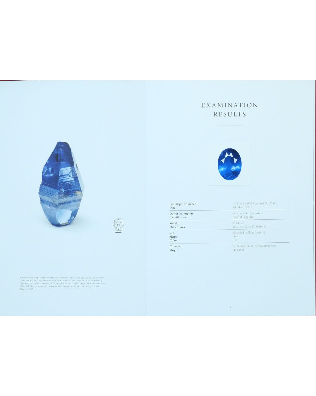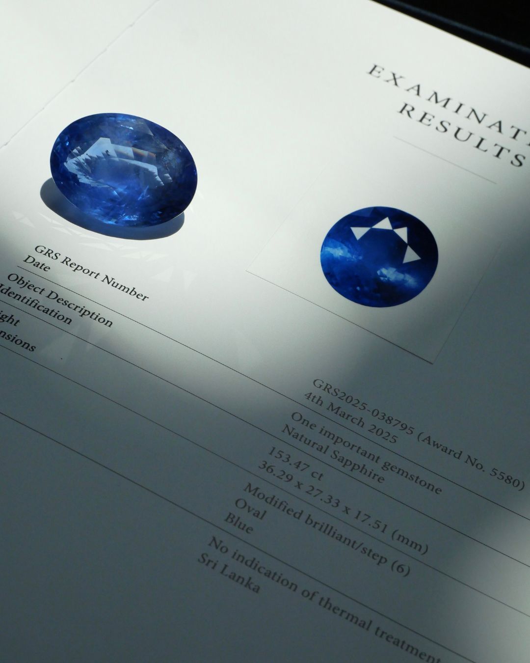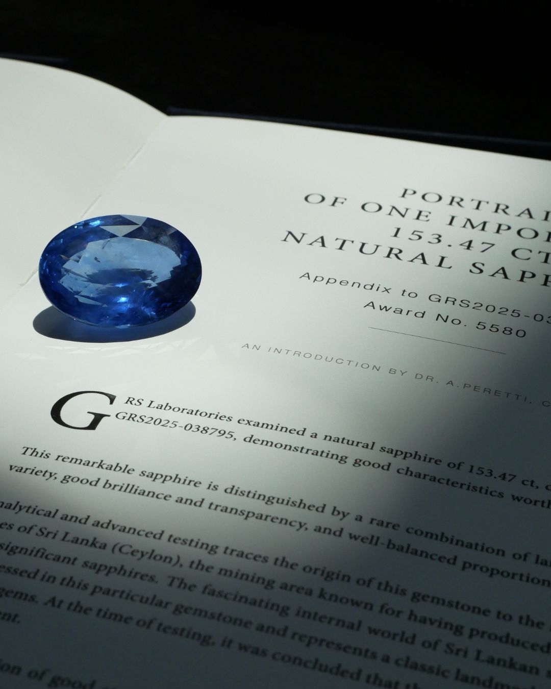 Sapphire 153.47 ct GRS2025-038795 (Award No.5580) OVAL blue No indication of thermal treatment Sri Lanka