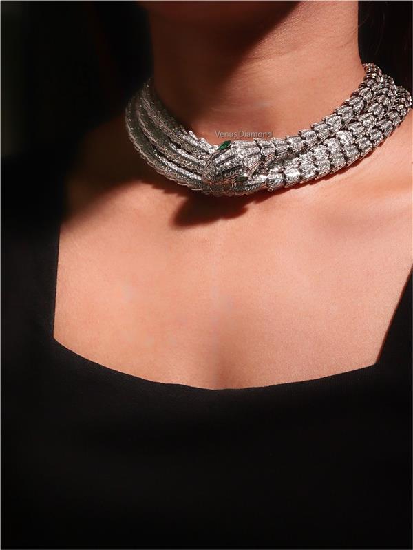 สร้อยคอเพชร Round 49.93 ct + มรกต 2 pcs 1.19 ct